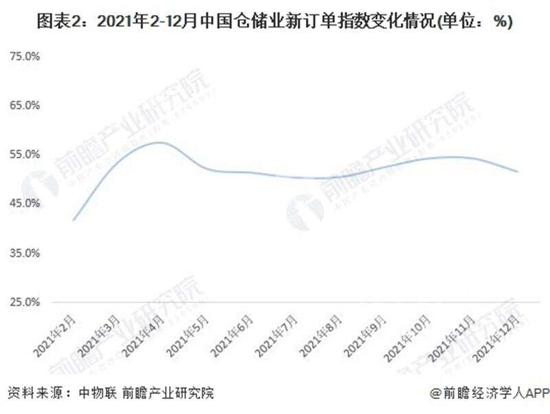 從中物聯(lián)發(fā)布的中國(guó)倉(cāng)儲(chǔ)指數(shù)中的新訂單指數(shù)變化情況來(lái)看,2021年2-12月中國(guó)倉(cāng)儲(chǔ)業(yè)新訂單指數(shù)均值為51.8%,同比下降0.4個(gè)百分點(diǎn);顯示出倉(cāng)儲(chǔ)行業(yè)受新冠疫情、全球經(jīng)濟(jì)下行等因素影響導(dǎo)致行業(yè)需求整體趨弱。