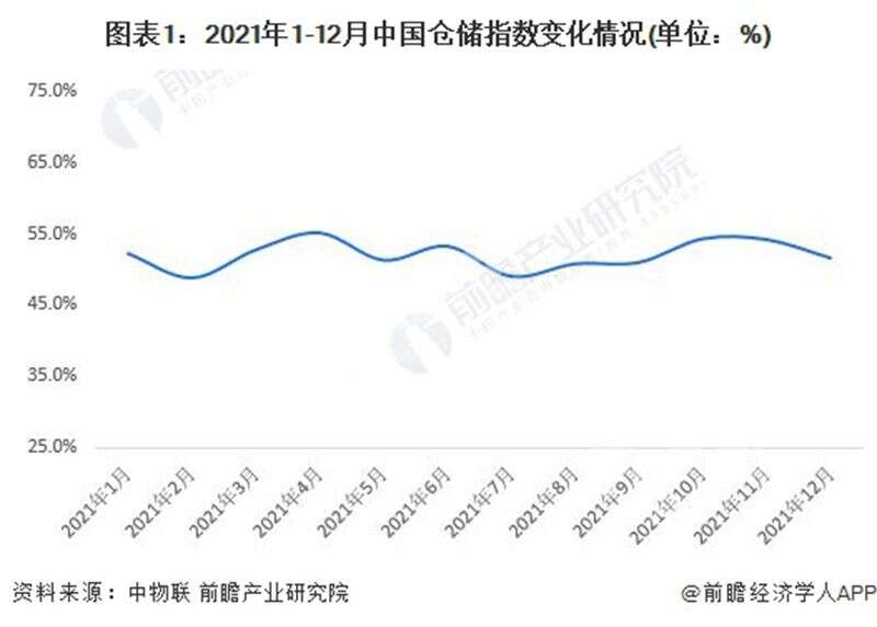 根據(jù)中國(guó)物流與采購(gòu)聯(lián)合數(shù)據(jù),2021年1-12月,中國(guó)倉(cāng)儲(chǔ)業(yè)期末庫(kù)存指數(shù)均值為52.9%,保持在榮枯線以上,同比增長(zhǎng)2.2個(gè)百分點(diǎn),反映出庫(kù)存水平明顯上升,企業(yè)庫(kù)存壓力所有上升。